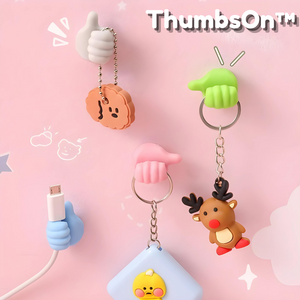 ThumbsOn™ vereinfachen die Organisation verschiedener Gegenstände wie Kabel, Schlüssel und mehr durch einfache Installation auf jeder glatten Oberfläche. Das fröhliche Design bringt Farbe in Ihren Raum und motiviert Sie, Ordnung zu halten.