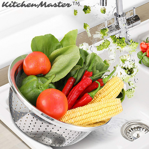 Haben Sie schon einmal daran gedacht, Lebensmittel und Gemüse in einer Schüssel zu zerkleinern, abzusieben und zu servieren? Mit unserer KitchenMaster™ 3-in-1-Multifunktionsschüssel aus Edelstahl können Sie jetzt ganz einfach drei verschiedene Aufgaben erledigen. Die Arbeit einer Reibe und eines Siebs kann mit dieser Schüssel allein erledigt werden. Mit dem KitchenMaster™ können Sie jetzt zerkleinern, waschen und abseihen.