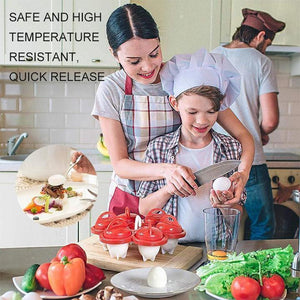 BPA-freie Antihaft-Silikonhüllen machen das Kochen von Eiern so einfach wie nie zuvor! Einfach zu verwenden, nur Öl in eine Tasse sprühen und abwischen, um es gleichmäßig zu verteilen, die Eier aufschlagen, in einen Eierkocher gießen, kochen und Eier aus der Tasse knallen lassen.