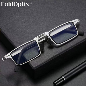 Verbessern Sie Ihr Brillenerlebnis mit FoldOptix™. Sie wurde entwickelt, um fortschrittliche Technologie mit klassischem Design zu verbinden. Das innovative faltbare Gestell und die Teleskopfedern machen das Tragen Ihrer Brille mühelos, während der intelligente Zoom-Lesespiegel für eine bemerkenswert klare Sicht sorgt.