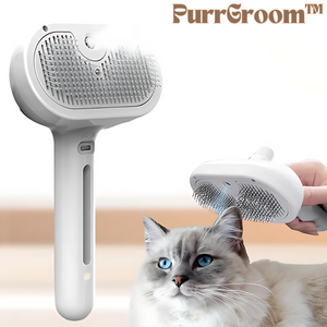 PurrGroom™ kombiniert den Komfort der Fellpflege mit dem zusätzlichen Vorteil eines feinen Sprühnebels, der Ihrem Haustier ein luxuriöses Wellness-Erlebnis bietet. Der dichte Sprühnebel sorgt für ein sanftes Bürsten, reduziert Knoten und Verfilzungen und verhindert gleichzeitig, dass das Fell verstreut wird.