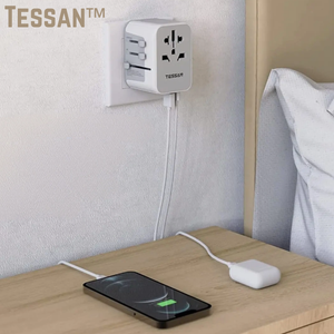 Das ist Tessan™ - Ihr All-in-One-Reiseadapter. Stellen Sie sich vor, Sie müssten in fremden Ländern nicht mehr nach Steckdosen suchen, denn dieser kleine Adapter passt sich mühelos an über 224 Länder an. Sie werden erstaunt sein, wie viele Geräte er auf einmal aufladen kann. Verabschieden Sie sich vom Mitführen mehrerer Ladegeräte oder Steckerumwandler und reisen Sie mit Leichtigkeit!
