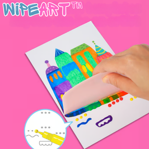 Die Verpackung enthält: 1 x WipeArt™ Set (Inklusive Zeichnungen, Gemälde, Marker, Farbe, Aufkleber und Wischer)